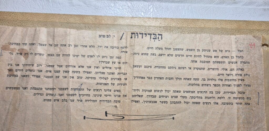 באים עלינו רגעים של התוודעות לעצמנו וקומתנו מתגבהת ואנו ממשמשים את פנינו וריסי עינינו, מחייכים לעצמנו ואנו צומחים וגדלים. טובה הבדידות המולידה שיר ענו בלב איש פשוט.